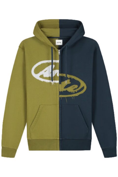 Split Patch Zip Hoodie (Navy/Green)